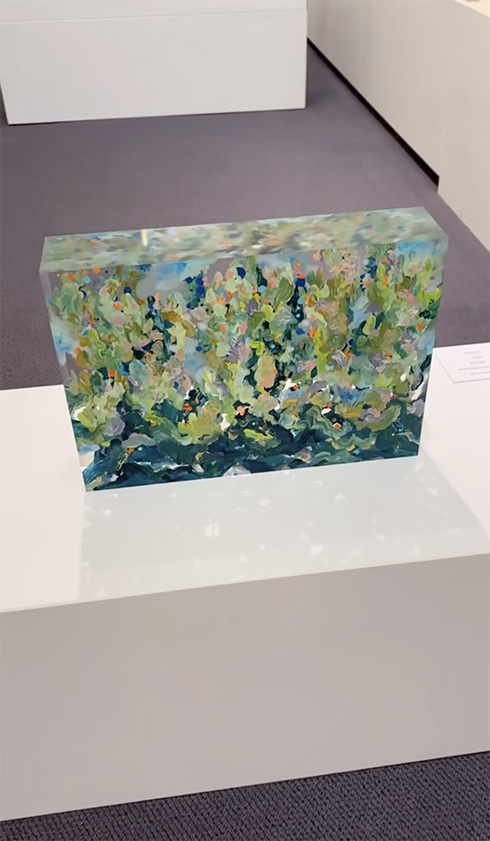 Judith de Vet is an admirer of the late work of Claude Monet: his wall-filling, slightly curved water lily paintings that completely absorb you. The transparency and suggestion of moving water can also be seen in her work. But she does it radically different: she dives beneath the surface and makes three-dimensional paintings. In paint she conjures up a tranquil underwater world, where it is pleasant to relax.